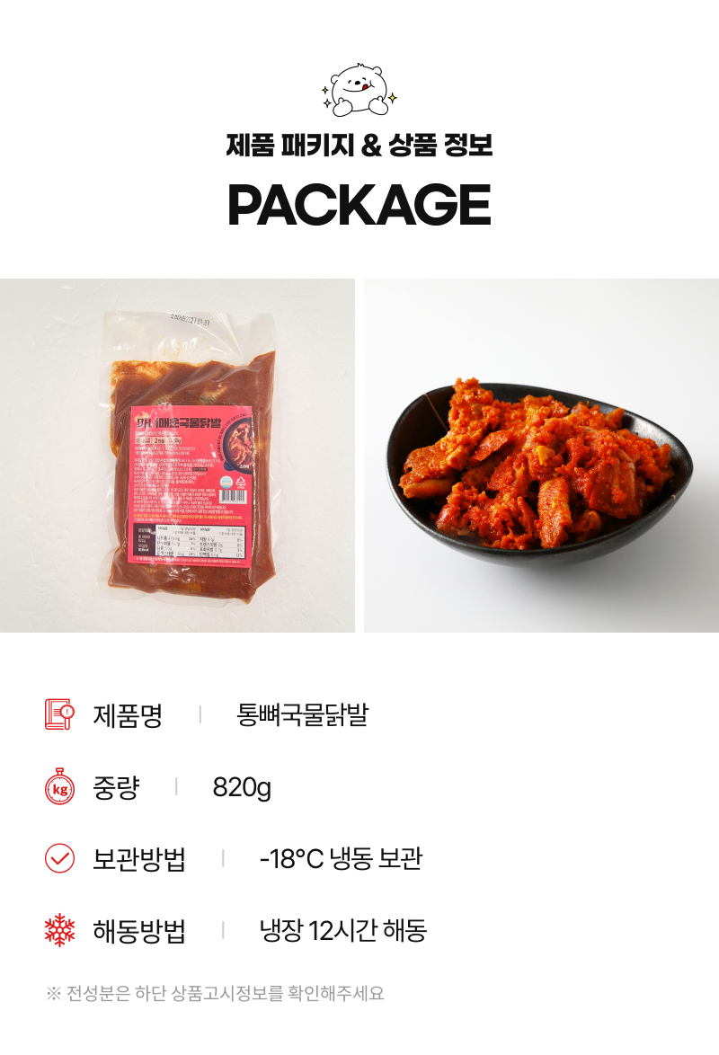 | 제품명 | 통뼈국물닭발(매운맛) | ||