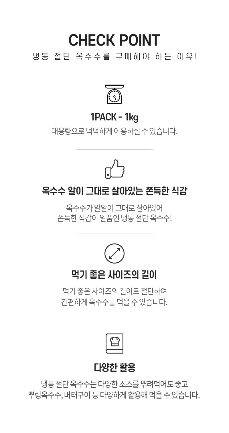 | 원재료명 및 함량 | 옥수수(스위트콘) 100% | ||