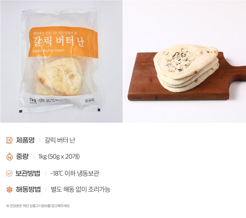 | 원재료명 및 함량 | 밀가루(밀)55.45%, 버터(우유)5.25%, 해바라기유3.75%, 마늘3%, 정제소금, 설탕, 효모, 탈지분유(우유), 탄산수소나트륨, 정제수 | ||