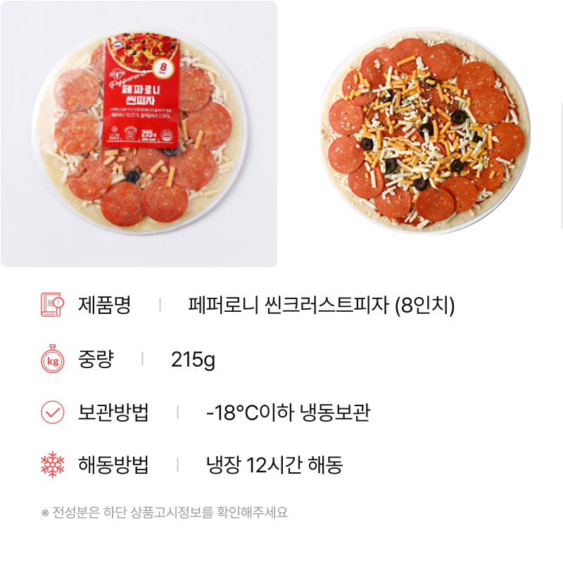 | 제품명 | 페파로니씬피자(8인치) | ||
