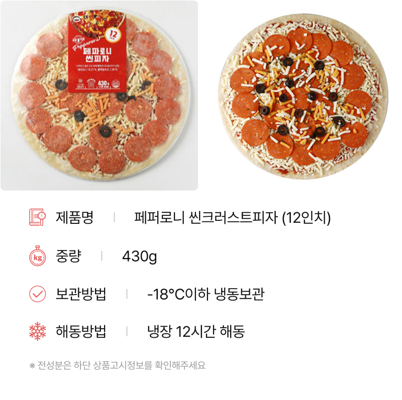 | 식품의유형 | 빵류(피자) / 가열하여 섭취하는 냉동식품 | ||