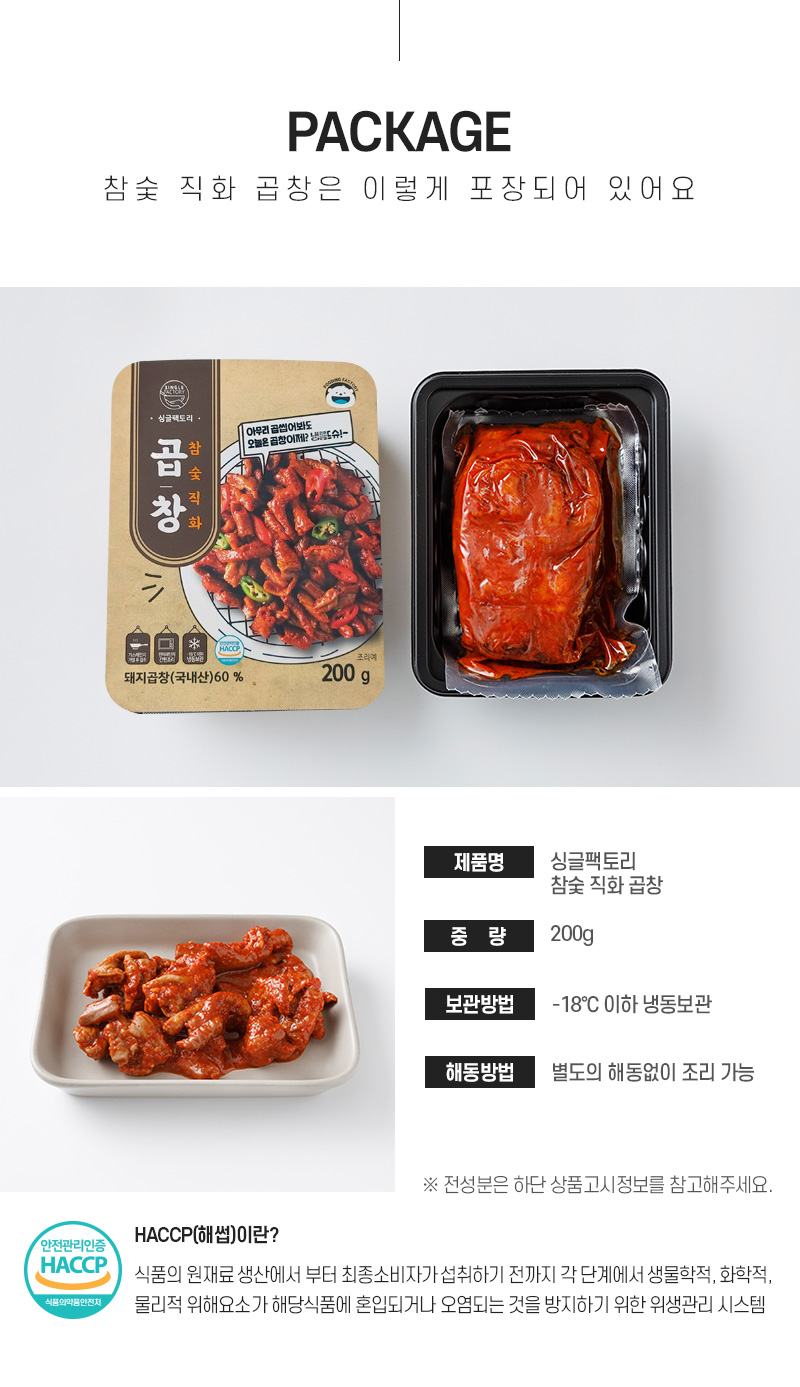 | 제품명 | 싱글팩토리 참숯 직화 곱창 | ||