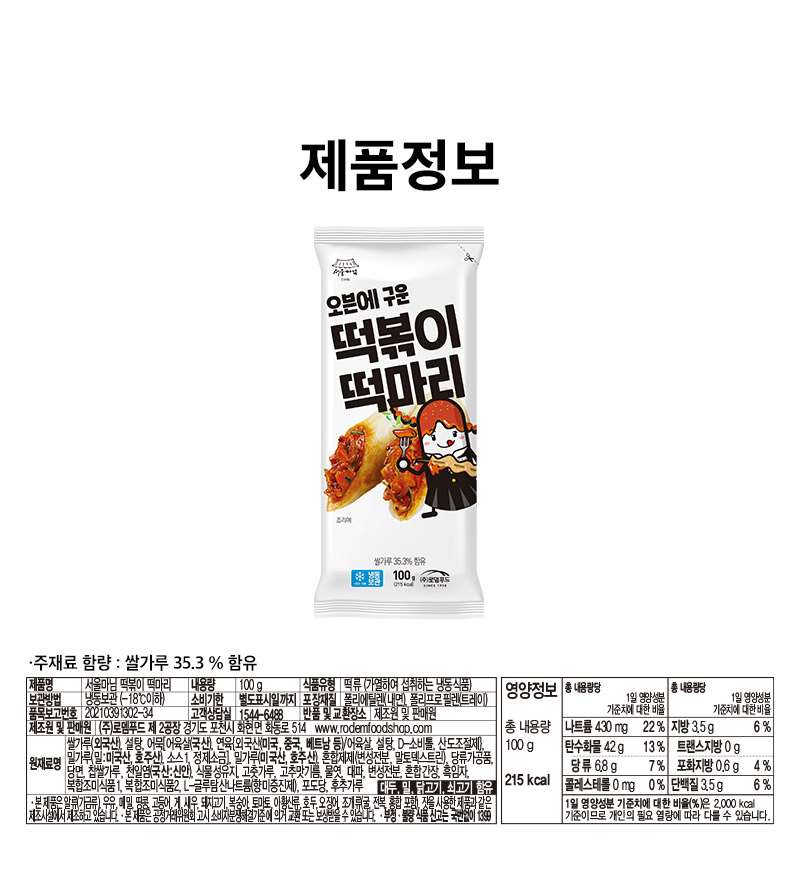 | 제품명 | 서울마님 떡볶이 떡마리 | ||