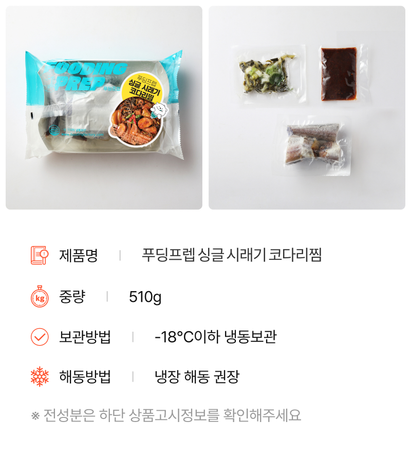 | 제품명 | 푸딩프렙 싱글시래기 코다리찜 | ||