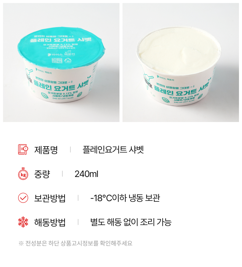 | 제품명 | 플레인 요거트 샤베트 | ||