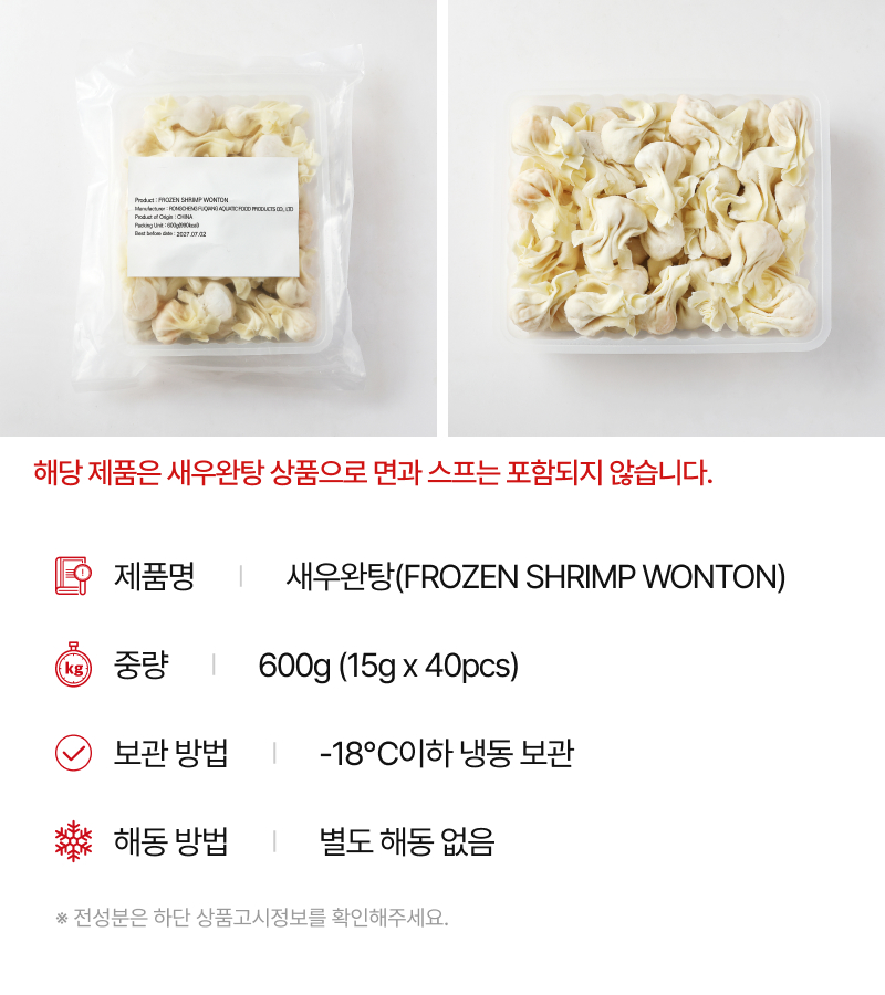 | 제품명 | 새우완탕(FROZEN SHRIMP WONTON) | ||