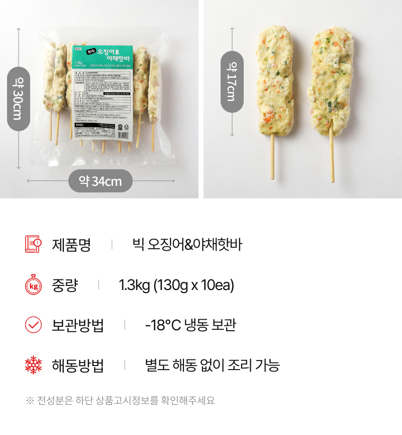 | 제품명 | 빅 오징어&야채핫바 | ||