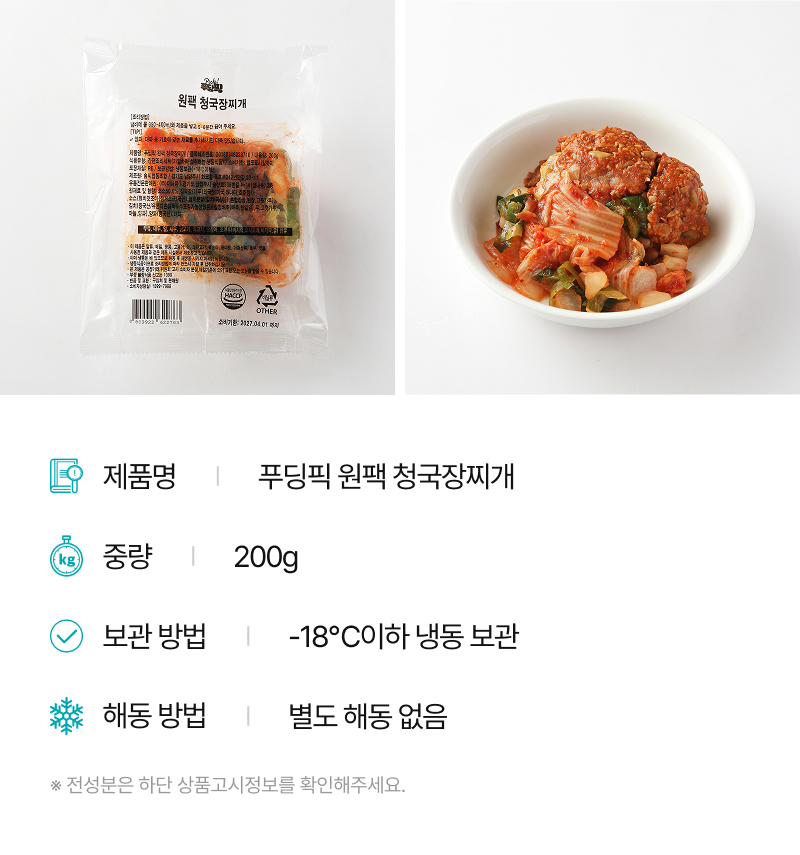 | 제품명 | 푸딩픽 원팩 청국장찌개 | ||