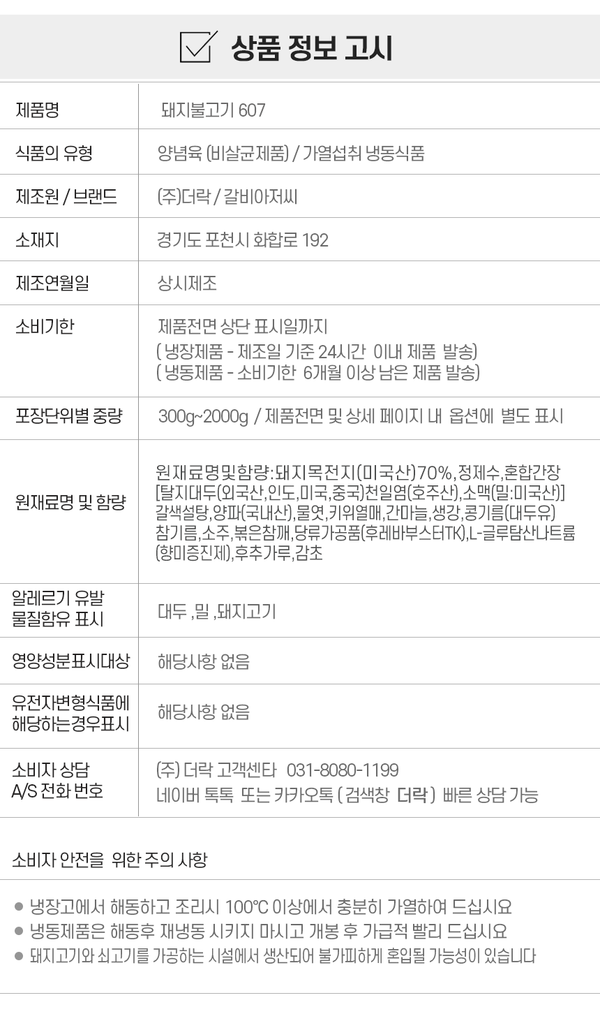 상품/배송문의 (반품, 교환, 제품문의)는 갈비아저씨 고객센터 031-8080-1199로 문의바랍니다.