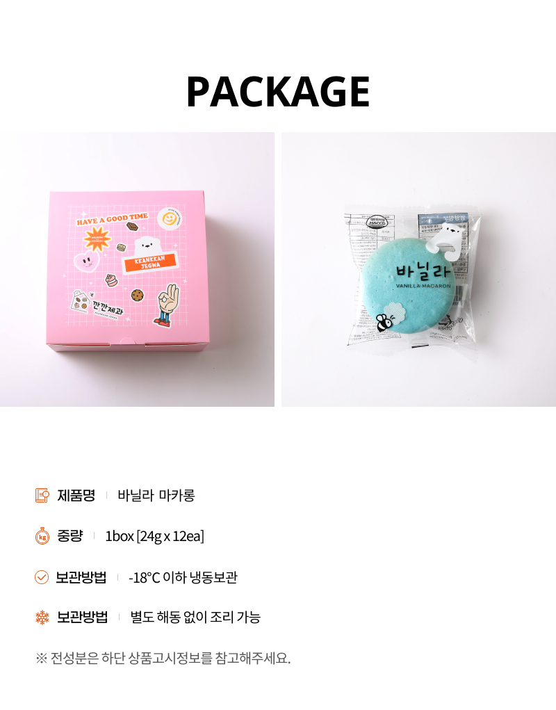 | 원재료명 및 함량 | 아몬드분말{아몬드(미국산),소맥분(밀:미국산)},설탕,슈가파우더(설탕,옥수수전분),계란흰자{난백(계란:국산),정제수,구연산삼나트륨,구연산,구아검},마가린{야자경화유(야자유:인도네이시아산),정제수,대두유(외국산:아르헨티나,미국,베트남 등),팜올레인유,에스테르화유(팜스테아린유,야자유)},정제수,중력분,당류가공품{액상버번바닐라(마다가스카르산)},혼합제제{뉴아이싱칼라블루,물엿,설탕,글리세린,아라비아검인스탄트검비에이,착색료(식용색소청색제1호),잔탄검,혼합제제(카라기난,로커스트콩검,포도당,영화칼륨,구연산삼나트륨),비타민C,구연산} | ||