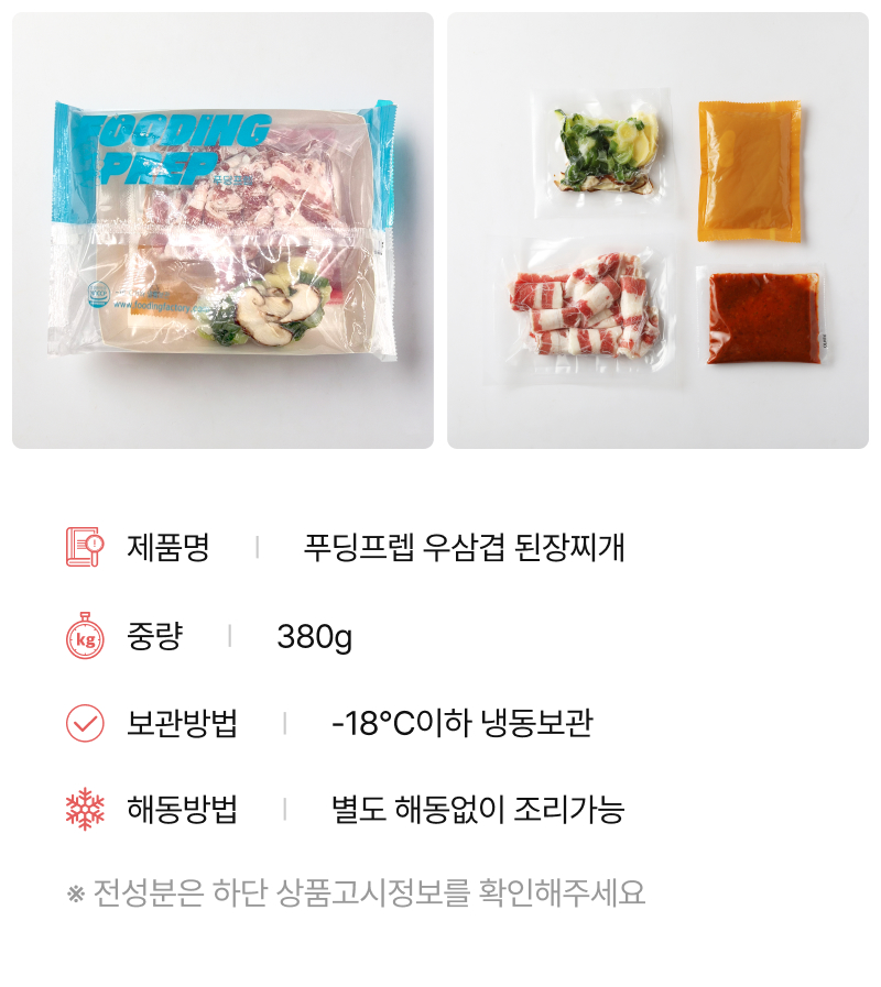 | 제품명 | 푸딩프렙 우삼겹 된장찌개 | ||