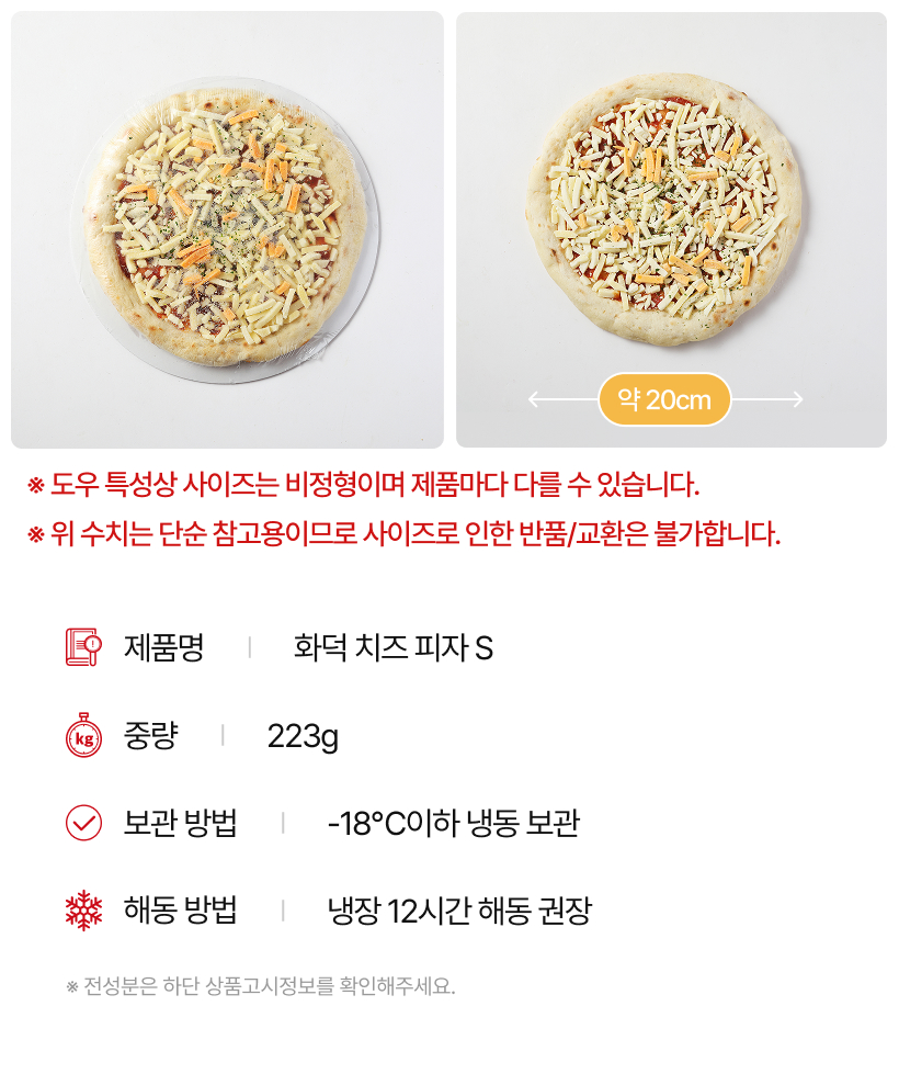 | 제품명 | 화덕 치즈 피자 S | ||
