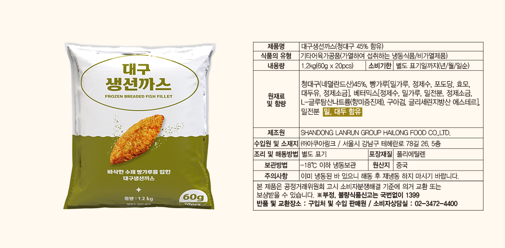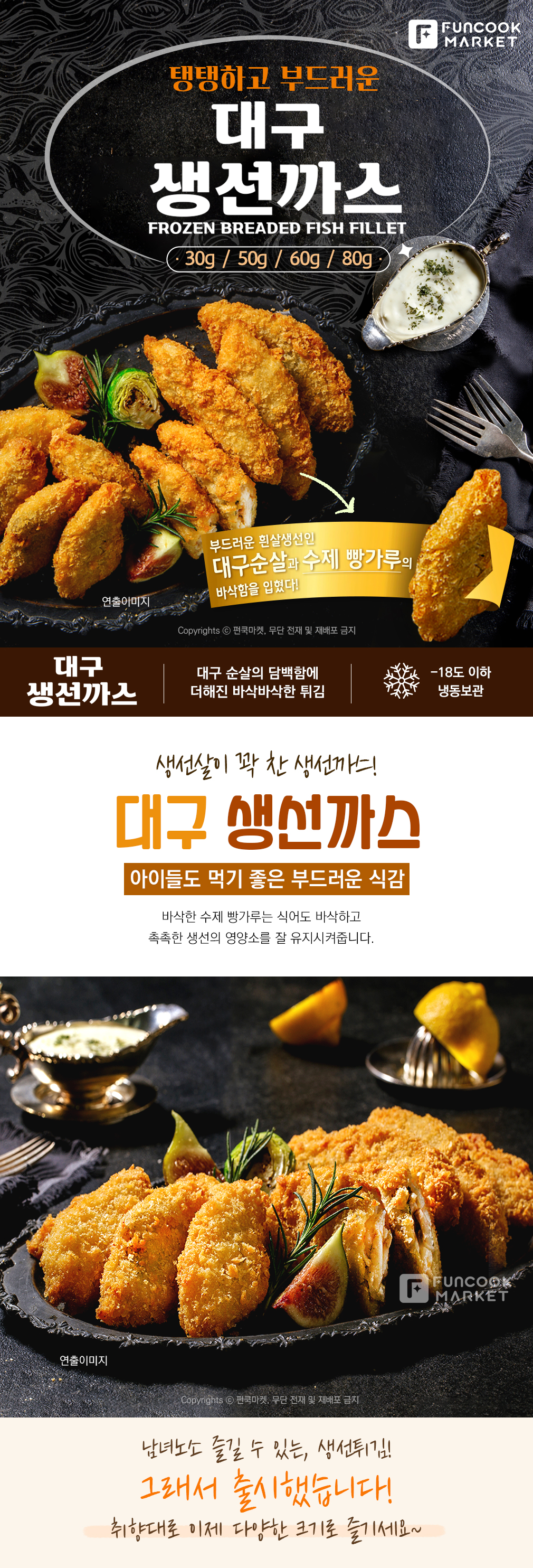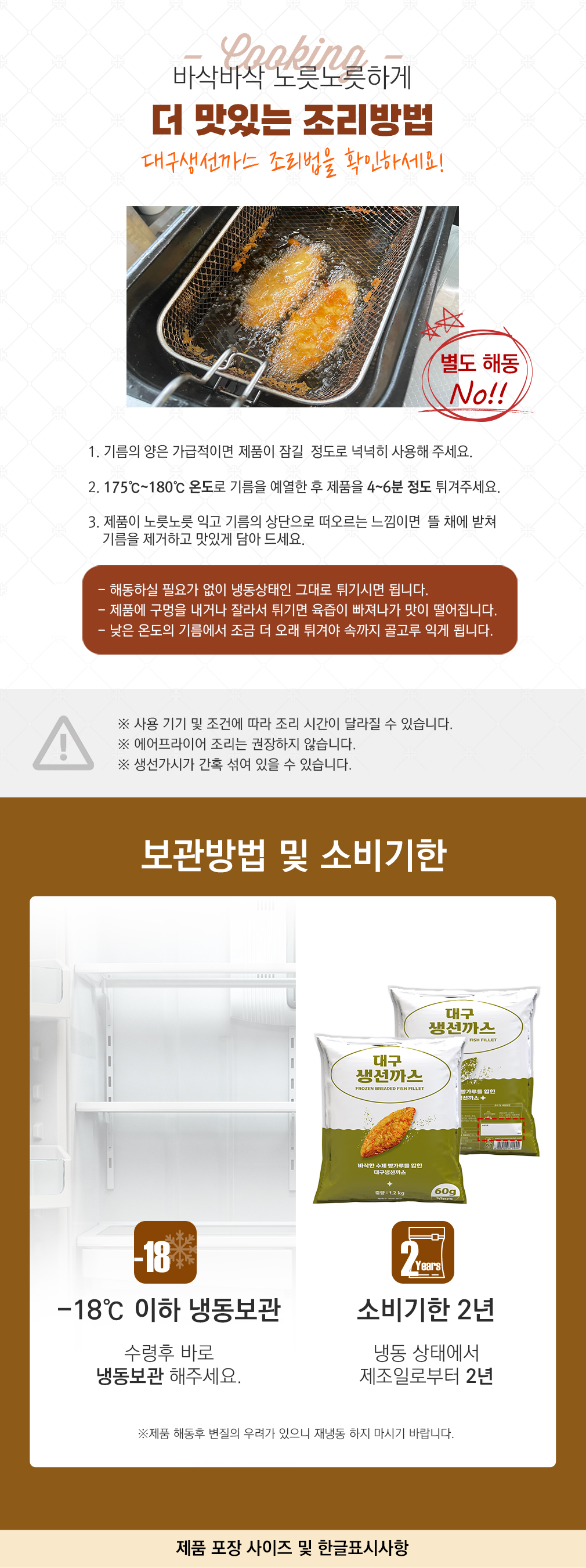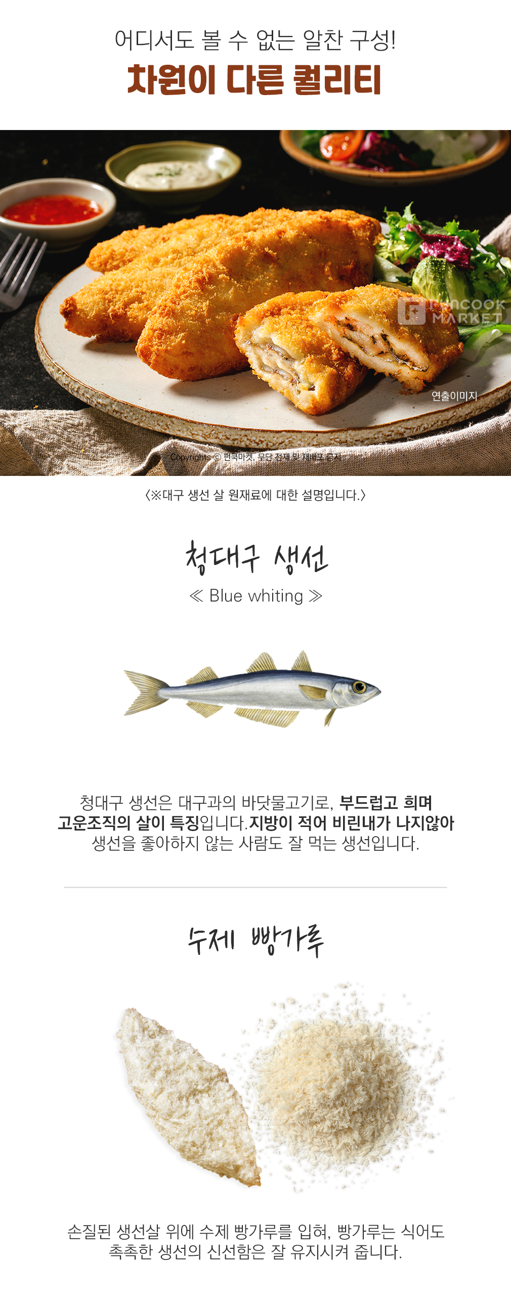 이미지 확대보기[펀쿡] 대구 순살 생선까스 1.2kg (60g X 20미) 흰살생선 생선 튀김